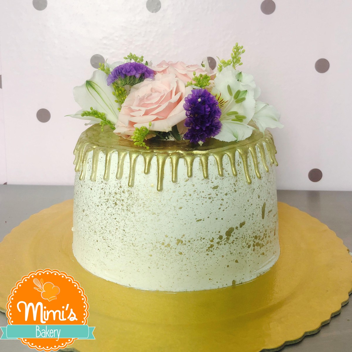 Drip Cake Dourado com Flores